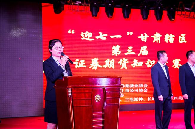 2017年6月29日,在中國(guó)共產(chǎn)黨生日來臨前夕,在《證券期貨投資者適當(dāng)性管理辦法》實(shí)施之際,甘肅證券期貨業(yè)協(xié)會(huì)、甘肅省上市公司協(xié)會(huì)聯(lián)合舉辦的“迎七一”甘肅轄區(qū)第三屆證券期貨知識(shí)競(jìng)賽現(xiàn)場(chǎng)比賽在蘭州隆重開賽。來自轄區(qū)證券期貨經(jīng)營(yíng)機(jī)構(gòu)和上市公司的60個(gè)代表隊(duì)參加了復(fù)賽。