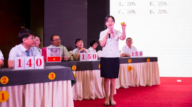 進(jìn)入總決賽,現(xiàn)場(chǎng)氣氛陡然升溫,競(jìng)爭(zhēng)進(jìn)入白熱化。這一階段增加了“勇于挑戰(zhàn)”環(huán)節(jié),可選的賽題分值為20、40、60不等,答對(duì)得分,答錯(cuò)要倒扣相同的分?jǐn)?shù)。這是一場(chǎng)知識(shí)儲(chǔ)備的大比拼,也是勇氣和膽識(shí)的較量,得失成敗可能就在“一瞬間”。變數(shù)加大,讓之前比分落后的隊(duì)伍看到了一次逆襲的機(jī)會(huì),激烈程度與不確定性的增強(qiáng),將現(xiàn)場(chǎng)的氣氛推向高潮。作為同樣是全程比賽無差錯(cuò)答題的代表隊(duì),中信建投證券蘭州、金昌、天水營(yíng)業(yè)部聯(lián)隊(duì)率先選擇了40分的題目,并且成功得分;此時(shí)的華龍證券蘭州定西南路、安寧東路聯(lián)隊(duì)就面臨著一個(gè)艱難的抉擇:如果選擇分值低的賽題,盡管可以穩(wěn)保前三,但可能無緣冠軍;如果選擇分值高的,答題風(fēng)險(xiǎn)加大,一旦失誤則之前的優(yōu)勢(shì)盡失。這時(shí)觀眾席呼聲驟起:“60分!60分!”最終,華龍證券蘭州定西南路、安寧東路聯(lián)隊(duì)下定決心放手一搏,選擇了60分值的題——“欲練英雄志,須明勝負(fù)多。”——雖然惜哉落敗,但任何選擇都是有代價(jià)的,而他們選擇的是拼搏之后的無怨無悔。