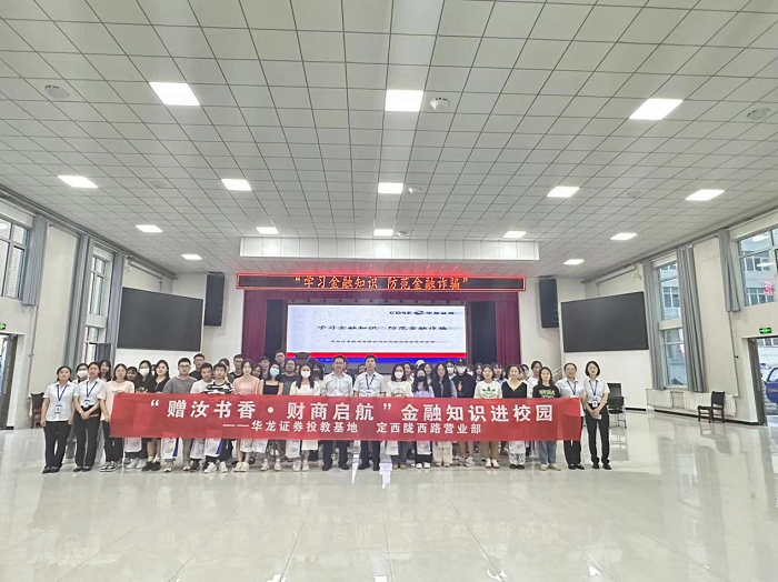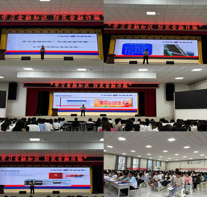 為積極響應(yīng)共青團(tuán)甘肅省委、甘肅省教育廳、甘肅證監(jiān)局關(guān)于開展“贈(zèng)汝書香·財(cái)商啟航”金融知識(shí)進(jìn)校園暨《股東來了》(2023) 投資者權(quán)益知識(shí)競(jìng)賽活動(dòng)的通知精神,提升在校學(xué)生的金融知識(shí)水平及風(fēng)險(xiǎn)防范意識(shí),樹立正確的投資觀念,6月19日晚華龍證券定西隴西路營(yíng)業(yè)部走進(jìn)甘肅中醫(yī)藥大學(xué)定西校區(qū),舉辦以“學(xué)習(xí)金融知識(shí) 防范金融詐騙”為主題的宣傳活動(dòng),活動(dòng)以知識(shí)講座的形式展開,講座由定西隴西路營(yíng)業(yè)部總經(jīng)理徐志雄主講,校團(tuán)委老師及300余名學(xué)生參加。