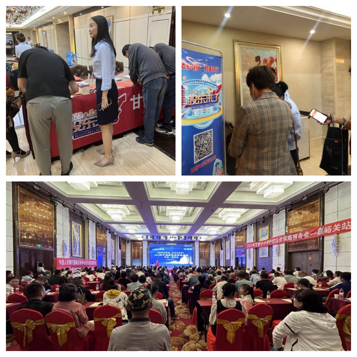 通過近2周的邀約,最終參會人數(shù)接近500人。本次投資策略報告會特邀請甘肅分公司首席投顧高彤老師,河北分公司首席投顧陳寒梅老師,湖北分公司首席投顧湯利卡老師給投資者帶來投資盛宴,以滿足投資者多元化需求,并通過合理的資產(chǎn)配置來分散投資風(fēng)險、獲取更穩(wěn)健的收益。本次報告會采用線下+線上模式,酒泉、敦煌、張掖營業(yè)部近50位投資者前來現(xiàn)場參會,其他營業(yè)部采取線下集體觀看的方式,讓更多的投資者參與其中,增加我們和投資者的黏性。本次報告會各個環(huán)節(jié)井然有序,取得了較好的效果,會議內(nèi)容也得到了甘肅分公司投資者的一致認可及廣泛好評。
