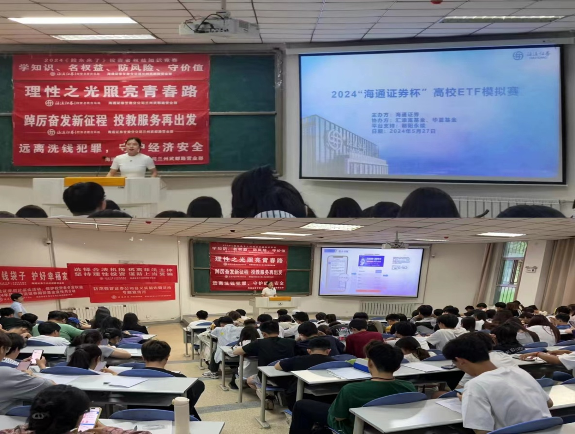 活動圍繞“ETF”“股東來了”“防范非法證券活動”“遠離電信詐騙”“退市制度改革”等內(nèi)容豐富、形式多樣的投資者教育活動。營業(yè)部講師結(jié)合當前市場及學(xué)生感興趣的話題以及ETF的投資原理、運作機制以及ETF在目前全球金融市場的重要性。讓同學(xué)們對中國的資本市場發(fā)展有更為直觀和深入的理解。目前隨著互聯(lián)網(wǎng)的傳播投資風(fēng)險意識的培養(yǎng)迫在眉睫,大學(xué)生已經(jīng)具備了較為成熟的認知能力,因此可以接觸到更復(fù)雜的金融工具和投資策略?!巴顿Y進百?!本褪亲審V大學(xué)子具備如何識別和管理風(fēng)險,理解市場動態(tài),以及如何做出理性的投資決策。通過案例分析、ETF模擬大賽等方式,使學(xué)生能夠在實踐中學(xué)習(xí)如何評估和應(yīng)對各種金融風(fēng)險。