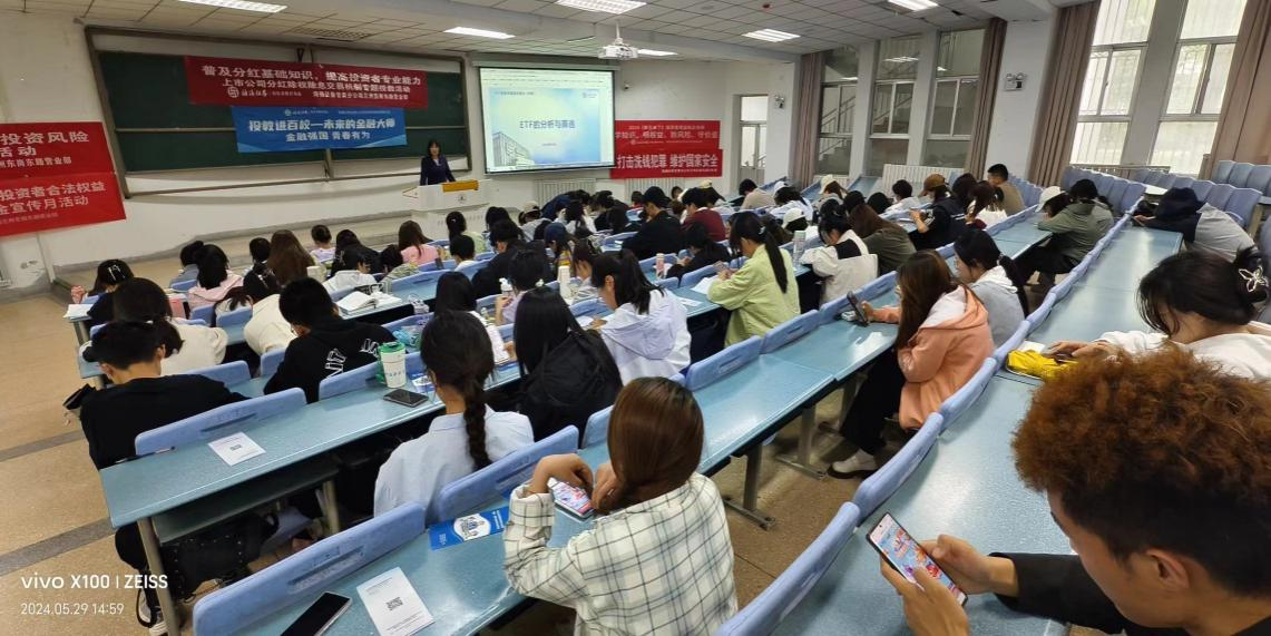 活動(dòng)伊始,講師們向同學(xué)們普及了ETF中級(jí)課程,通過(guò)對(duì)ETF 的主要優(yōu)勢(shì)、ETF挑選方法、相關(guān)指數(shù)概念與指數(shù)體系及交易過(guò)程的策略分析進(jìn)行一一解讀,并邀請(qǐng)同學(xué)們注冊(cè)參與“2024‘海通證券杯’高校ETF模擬賽”。以模擬大賽的方式,為大學(xué)生們提供了一個(gè)安全、實(shí)用的學(xué)習(xí)平臺(tái),幫助同學(xué)們通過(guò)模擬交易提升風(fēng)險(xiǎn)管理和風(fēng)險(xiǎn)控制的能力;通過(guò)模擬交易體驗(yàn)市場(chǎng)波動(dòng),學(xué)習(xí)運(yùn)用ETF的投資方法;同時(shí)也通過(guò)模擬交易使同學(xué)們理論與實(shí)踐相結(jié)合,樹(shù)立科學(xué)的投資觀。