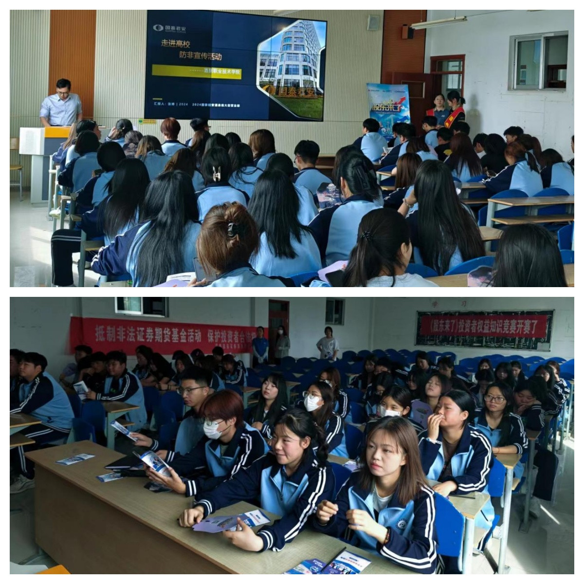 為了進一步推廣金融知識,提高大學(xué)生的投資理財意識,國泰君安證券酒泉營業(yè)部積極組織《股東來了》(2024)投資者權(quán)益知識競賽活動走進酒泉職業(yè)技術(shù)學(xué)院校園活動,針對大學(xué)生特點,舉辦了一場反詐及金融知識普及交流會。