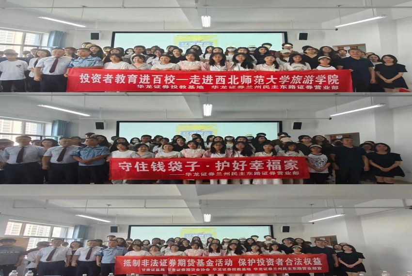 為積極響應(yīng)中國(guó)證監(jiān)會(huì)、中國(guó)證券業(yè)協(xié)會(huì)“推動(dòng)投資者教育納入國(guó)民教育體系”的號(hào)召,積極承擔(dān)社會(huì)責(zé)任,充分發(fā)揮證券金融機(jī)構(gòu)在提升國(guó)民金融素養(yǎng)工作中的主體作用,貫徹落實(shí)投資者保護(hù)工作,華龍證券蘭州民主東路營(yíng)業(yè)部開(kāi)展了以“防范非法集資,遠(yuǎn)離金融詐騙”為主題的“投資者教育進(jìn)百校”活動(dòng)。西北師范大學(xué)旅游學(xué)院110余名師生參加本次活動(dòng)。