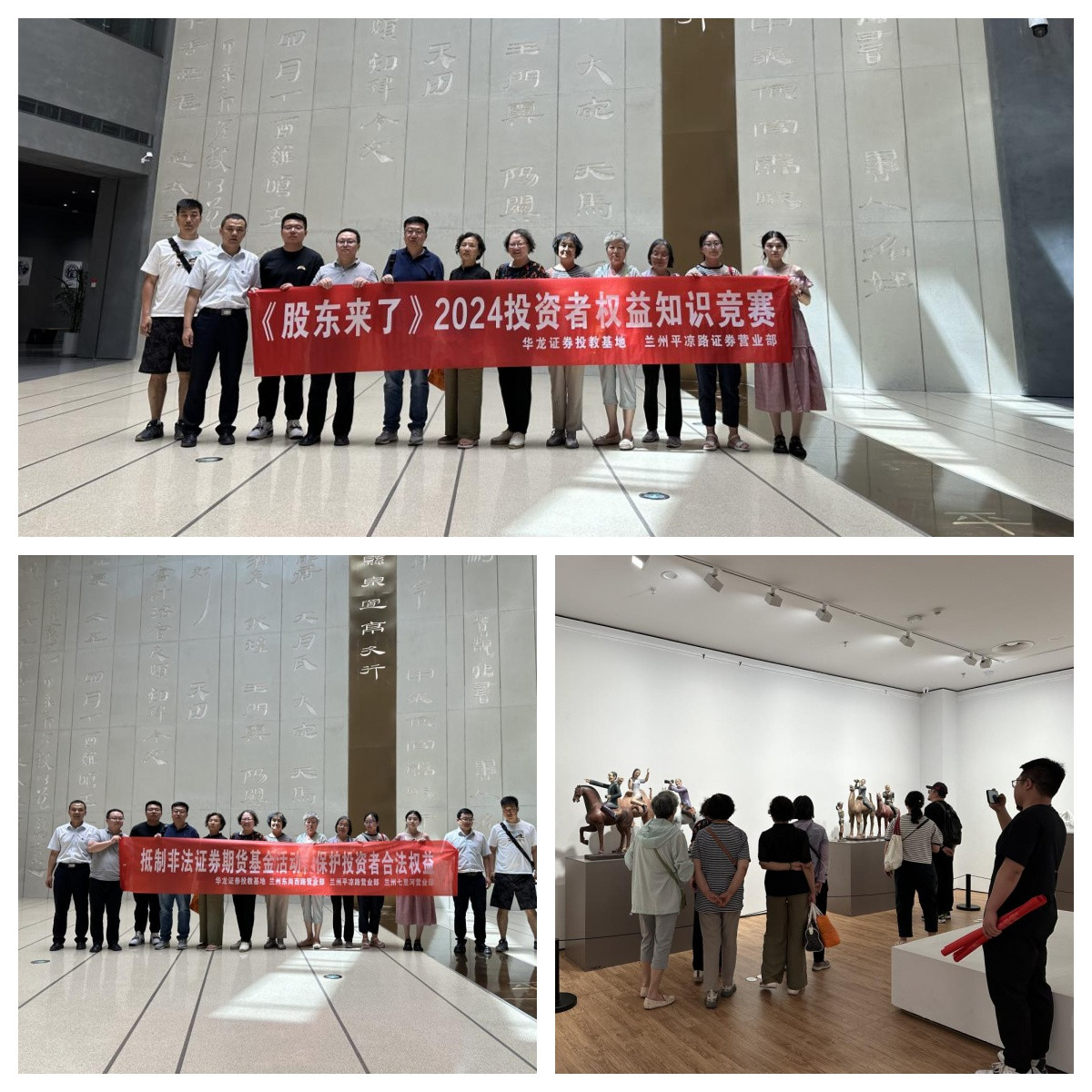 6月14日,營(yíng)業(yè)部在活動(dòng)現(xiàn)場(chǎng)通過證券法規(guī)、非法證券期貨基金活動(dòng)案例講解,圍繞電信詐騙、理財(cái)陷阱、非法集資、股市黑嘴等多發(fā)騙局,結(jié)合近年發(fā)生的相關(guān)典型案例,講解多種非法金融欺詐活動(dòng)的特征和手段,剖析非法金融活動(dòng)造成的巨大危害,提示投資者提高警惕、警鐘長(zhǎng)鳴,結(jié)合近期市場(chǎng)新變化,尤其針對(duì)投資者近期關(guān)注度較高的強(qiáng)退終止上市情形進(jìn)行講解,警示投資者回避觸及強(qiáng)退的交易類、財(cái)務(wù)類、規(guī)范類、重大違法類風(fēng)險(xiǎn)標(biāo)的,向投資者傳導(dǎo)主動(dòng)學(xué)習(xí)、更新交易規(guī)則、金融知識(shí)對(duì)于提高風(fēng)險(xiǎn)識(shí)別防范能力的必要性和重要性,鼓勵(lì)投資者堅(jiān)定信心,理性面對(duì)市場(chǎng)波動(dòng),同時(shí)保護(hù)好個(gè)人及家人信息、財(cái)產(chǎn)安全,共同維護(hù)健康有序的金融環(huán)境。交流中,詳盡介紹《股東來了》(2024)主題活動(dòng),通過“猜詞消消樂”及“個(gè)人闖關(guān)賽”等生動(dòng)靈活喜聞樂見的小游戲方式,了解金融法規(guī)、投資者權(quán)益保護(hù)知識(shí)。最后,營(yíng)業(yè)部帶領(lǐng)投資者代表趕赴甘肅簡(jiǎn)牘博物館,昏黃的射燈打在簡(jiǎn)牘上,靜謐而神秘,細(xì)讀上面依然黝黑的墨跡,有私人書信、涂鴉、美酒釀造方、志怪小說,內(nèi)容滄桑又接地氣,回顧歷史著眼當(dāng)下,在源遠(yuǎn)流長(zhǎng)的中華文明中找尋傳承與延續(xù),從這片片歷史印記中理解追求長(zhǎng)期穩(wěn)健且張弛有度的投資真諦,投資者代表對(duì)活動(dòng)組織給予高度肯定。