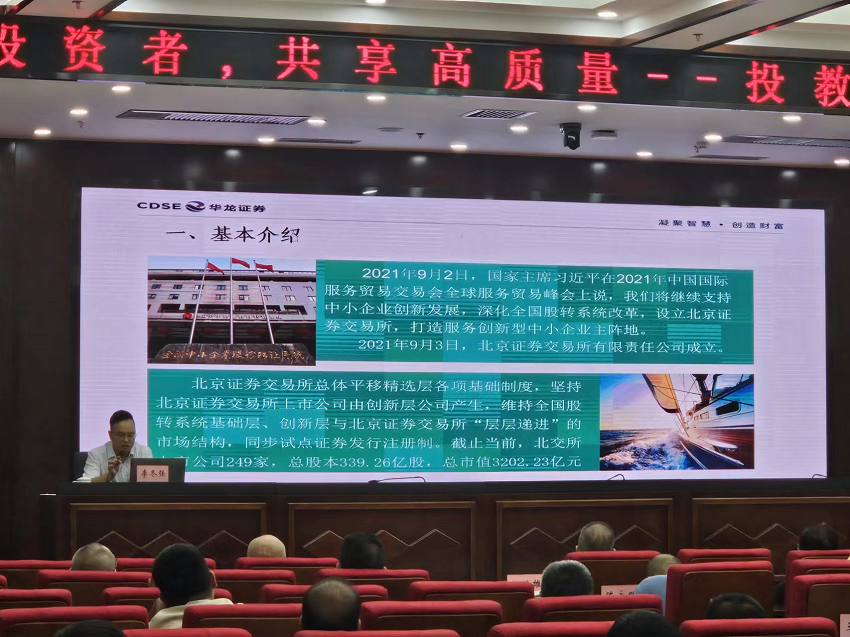 華龍證券講師就北交所轉(zhuǎn)板機制、大宗交易以及新三板交易機制進行了講解,一名參加活動的投資者表示,本次活動是對自己投資知識的一次極大提升,“讓我對各個板塊的證券交易有了更多的了解”。此次投資者走進掛牌公司活動,讓投資者對交設股份的經(jīng)營規(guī)模、市場發(fā)展狀況及戰(zhàn)略規(guī)劃有了更直觀的認識,有助于投資者在投資決策中能更加客觀理性的分析和考量;同時,通過華龍證券講師的講解,讓投資者對于股轉(zhuǎn)掛牌公司交易規(guī)則有了更深刻的了解。