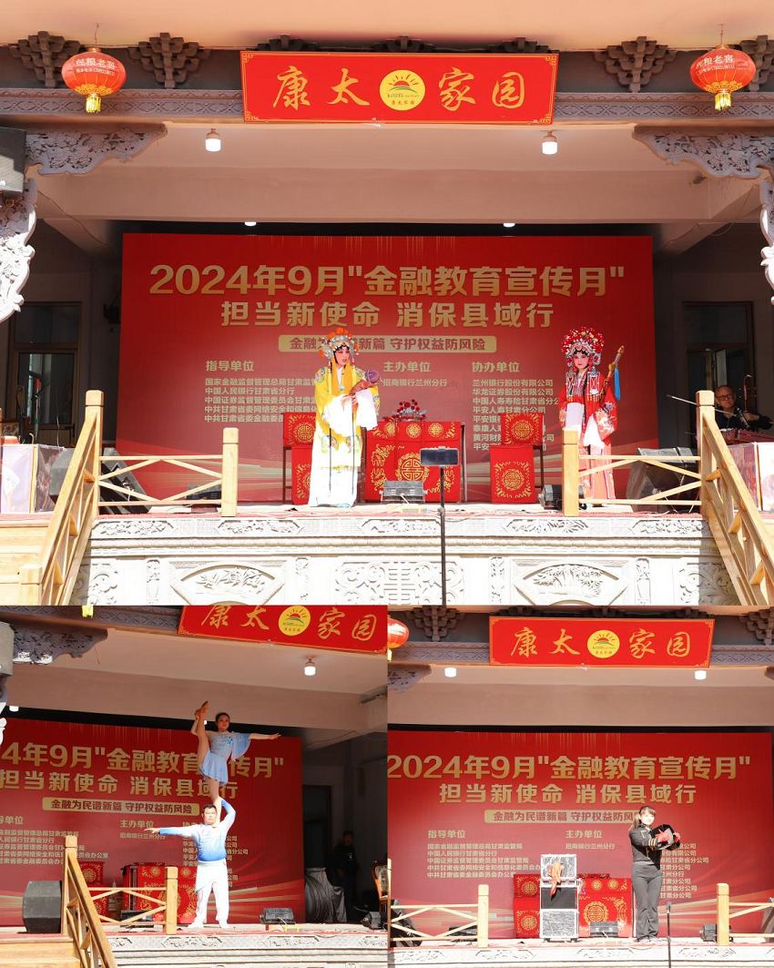 九月的榆中,居民沉浸在豐收的喜悅里。為提升縣域居民的金融素養(yǎng)和風險防范意識,在國家金融監(jiān)督管理總局甘肅監(jiān)管局、中國證券監(jiān)督管理委員會甘肅監(jiān)管局、甘肅證券期貨業(yè)協(xié)會的指導下,9月23日,華龍證券投教基地、蘭州七里河證券營業(yè)部、榆中棲云北路營業(yè)部聯(lián)合主辦方招商銀行蘭州分行等8家金融機構(gòu),以“擔當新使命,消??h域行”為主題,走進榆中縣康太家園開展投教集中宣傳活動。本次活動結(jié)合傳統(tǒng)文化戲曲表演等豐富多彩的形式,將金融知識及消費者權(quán)益保護理念深入傳播至基層民眾身邊,幫助基層民眾“學金融、懂金融、信金融、用金融”。