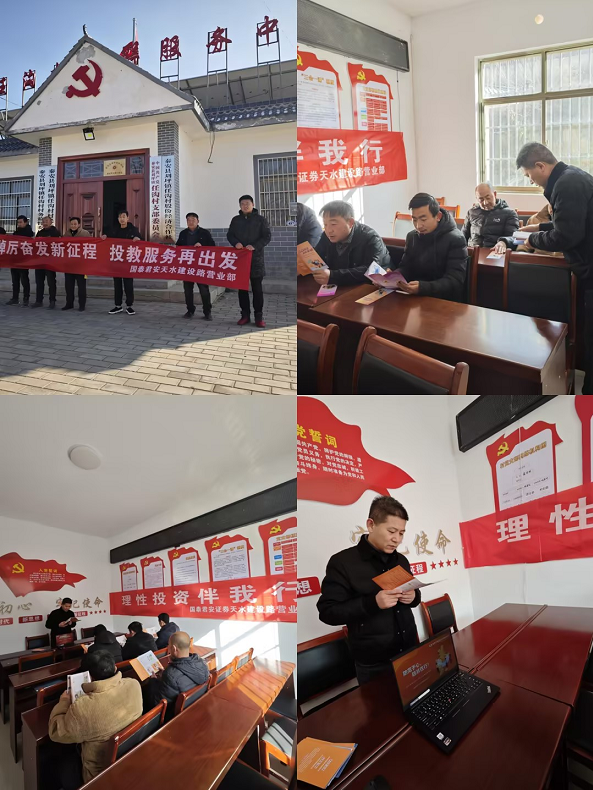 為提升廣大鄉(xiāng)村投資者的金融素養(yǎng),增強(qiáng)其風(fēng)險防范意識,樹立理性投資理念,國泰君安證券天水建設(shè)路營業(yè)部響應(yīng)監(jiān)管部門的號召,積極行動,分別利用周末時間,邀約營業(yè)部部分投資者組織開展線下專項投教沙龍,深入秦安縣劉萍鎮(zhèn)任溝村開展以“理性投資伴我行”為主題的投資者教育活動,取得了良好的效果。