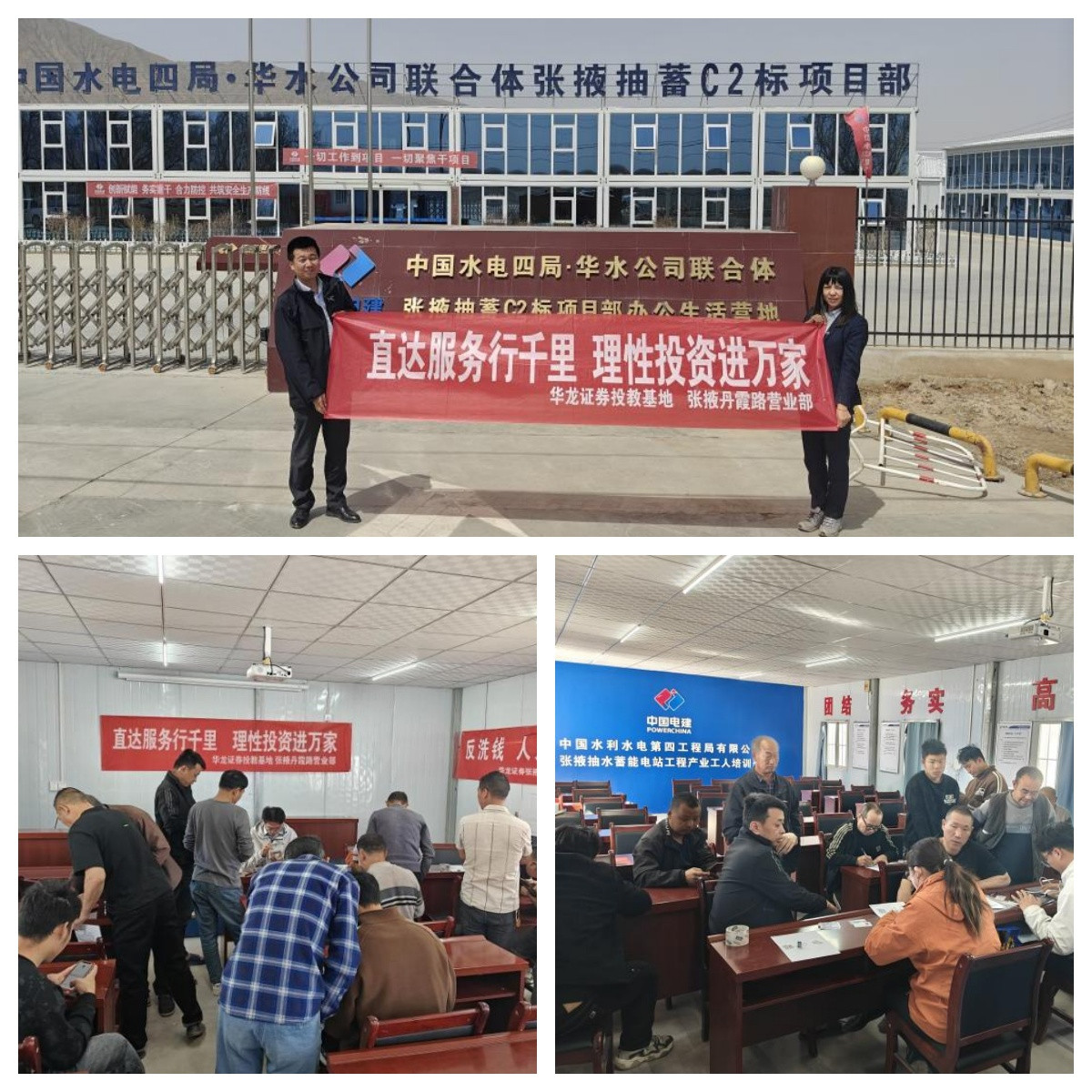 為踐行金融五篇大文章,做好金融服務實體經(jīng)濟工作,扎實開展普惠金融服務,4月21日華龍證券張掖丹霞路營業(yè)部聯(lián)合建設銀行張掖西環(huán)路支行走進張掖抽水蓄能電站項目部生活區(qū),為來自全國各地的工人朋友提供便捷金融服務的同時深入開展 “直達服務行千里,理性投資進萬家” 主題投教活動,幫助他們提升風險識別能力,充分認識不法金融活動的危害,遠離非法證券欺詐陷阱。