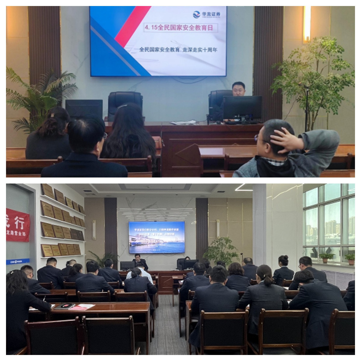 一、通過營業(yè)部門頭跑馬燈、滾動屏連續(xù)播放“全民國家安全教育 走深走實十周年”主題宣傳提示標語;在營業(yè)部二樓大廳投教園地張貼相關(guān)宣傳海報及宣傳資料;在電視機大屏投放4.15宣傳內(nèi)容,并針對前來現(xiàn)場辦理相關(guān)業(yè)務(wù)的投資者發(fā)放相關(guān)宣傳彩頁供其查閱。