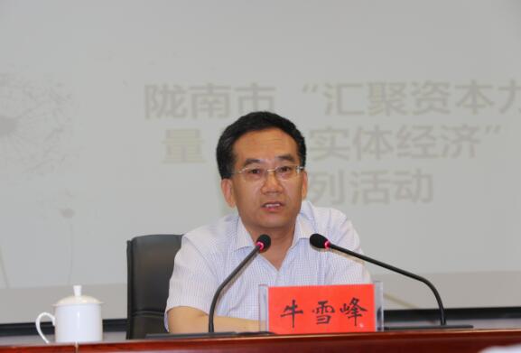 為貫徹落實甘肅省第十三次黨代會、全國證券期貨監(jiān)管會議精神,進一步推動資本市場服務實體經(jīng)濟發(fā)展,由甘肅省政府金融辦與甘肅證監(jiān)局聯(lián)合主辦,隴南市政府和甘肅證券期貨業(yè)協(xié)會承辦的“匯聚資本力量助力實體經(jīng)濟”系列活動2017年7月10日在隴南市正式啟動,活動主要內(nèi)容包括資本市場基本知識和政策宣講及證券經(jīng)營機構與縣區(qū)政府和企業(yè)一對一精準對接服務。甘肅證監(jiān)局黨委書記、局長牛雪峰,甘肅證監(jiān)局黨委委員、副局長付惟龍,甘肅證監(jiān)局機構處處長、稽查處處長柴小平,甘肅省政府金融辦黨組成員、副主任梁虎堂,隴南市市委常委、副市長張越,甘肅證券期貨業(yè)協(xié)會常務副會長兼秘書長陳耔宏等出席活動。隴南市市直有關單位負責人,各縣區(qū)分管領導、金融辦主要負責人、轄區(qū)主要證券經(jīng)營機構負責人和隴南市重點企業(yè)負責人參加了此次活動。