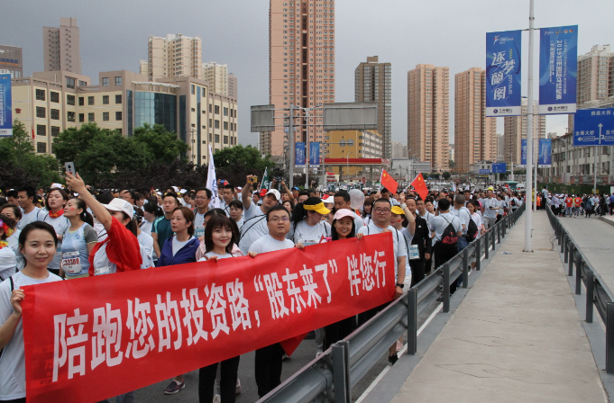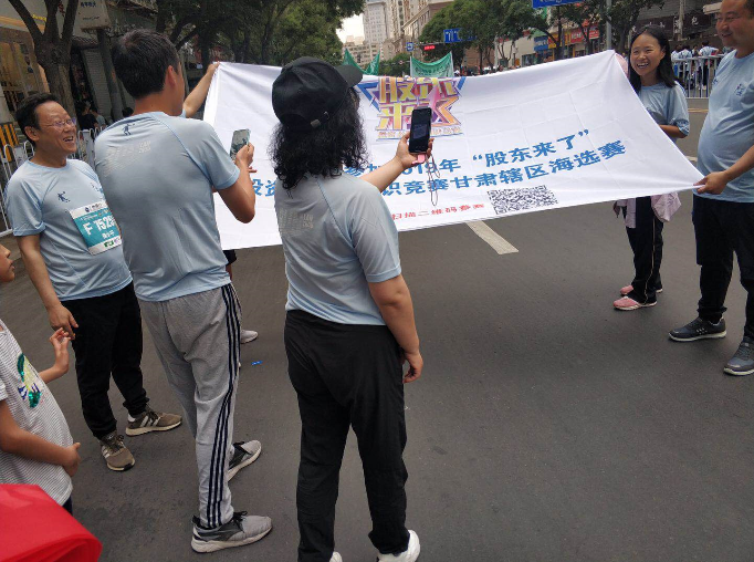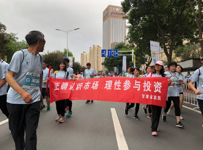 2019年6月2日,藍天白云之下,草木欣然;黃河風情線上,人頭攢動。一年一度的蘭州國際馬拉松賽于上午7時30分鳴槍開跑,賽事吸引了來自19個國家及地區(qū)的40007名選手參賽。這是整個城市的盛大節(jié)日,起跑處國歌陣陣,彩旗飄飄,借助“激情馬拉松,全民嘉年華”的火熱氛圍,甘肅證監(jiān)局、甘肅證券期貨業(yè)協(xié)會攜手轄區(qū)法人機構華龍證券股份有限公司現(xiàn)場助力,拉起“陪跑您的投資路,‘股東來了’伴您行”條幅和繪有比賽圖標、參賽二維碼的參賽展布,為2019“股東來了”投資者權益知識競賽宣傳造勢,成為比賽起點又一道亮麗的風景線。