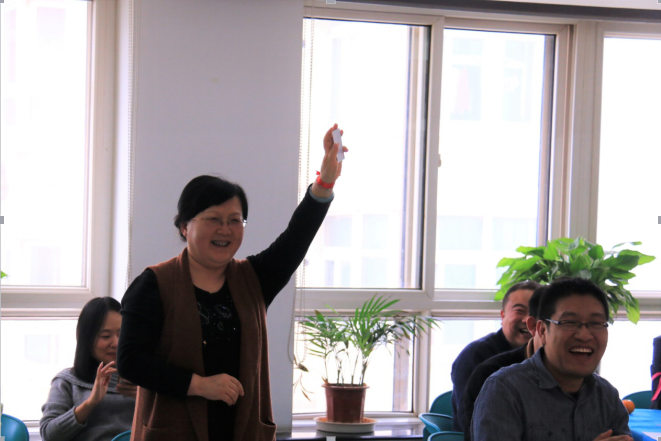 聯(lián)歡會以趣味運動會形式開展,采取抽簽方式分“紫、紅、藍、粉”四個方隊。比賽項目分為集體項目和個人項目兩大類,集體項目有“數(shù)字排序”“友誼傳遞”“心有靈犀”,考驗的是各組的集體智慧以及團結(jié)協(xié)作、默契配合的精神;個人項目分為“精準投擲”“你比劃我來猜”“夾湯圓”“趕‘豬’跑”四項,有的靠的是定力,有的關(guān)鍵要沉穩(wěn),有的需要的是靈巧,趣味性更濃。各組都派出了自己的精兵強將,組成靈活、高效的參賽隊伍。趣味比賽雖不同于體育競技那般緊張激烈,但參賽人員個個精神抖擻,以飽滿的熱情和精神狀態(tài)投入比賽當中,形象詮釋了“全面參與、豐富互動、觀賞共融”的和諧理念。