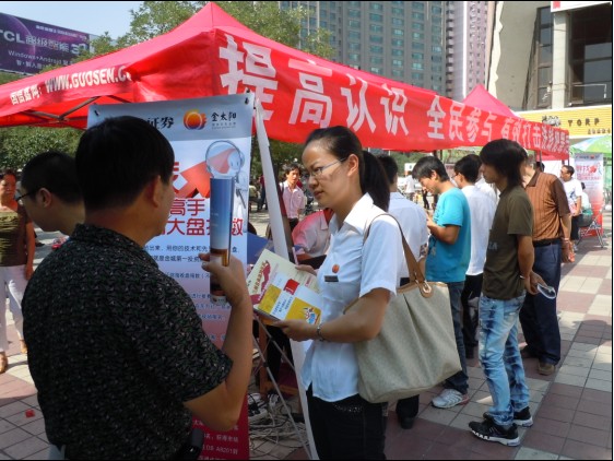 2011年8月23日至25日,協(xié)會聯(lián)合國信證券蘭州北濱河路營業(yè)部,在位于市中心的東方紅廣場面向廣大市民開展反洗錢宣傳活動。期間,協(xié)會工作人員和國信證券員工向市民細致講解反洗錢的概念、意義,提醒市民朋友多關(guān)注身邊經(jīng)濟活動。